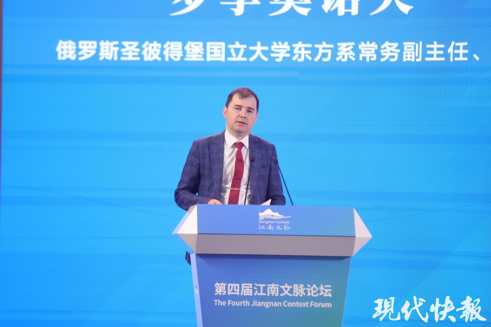 11月29日,第四屆江南文脈論壇在無錫舉辦。俄羅斯圣彼得堡國立大學東方系常務(wù)副主任、教授羅季奧諾夫用一口略帶京腔的普通話發(fā)表主旨演講,主題為《中國江南文學在俄羅斯譯介傳播及其進展》。