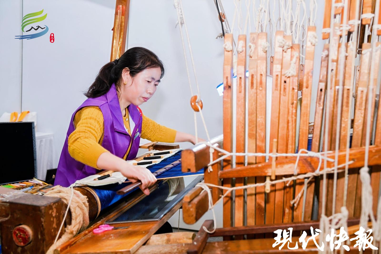 編織繡項(xiàng)目中,南京云錦的比賽尤為引人注目。花本由評(píng)委老師于前一晚抽簽決定,選手在不知道圖案的情況下,需在1小時(shí)內(nèi)完成織造,顏色搭配自由發(fā)揮,充分考驗(yàn)選手的技藝和創(chuàng)意。此外,編織繡還涵蓋了拼布、絨花、刺繡、竹編、繩結(jié)、扎染等多個(gè)品類,展現(xiàn)了傳統(tǒng)手工藝的多樣性與獨(dú)特魅力。